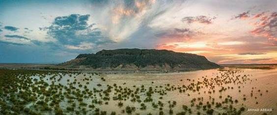 Автор приводит описание местности вокруг горы, говоря, что она «также является важным археологическим объектом: на южном мысе восточного склона руины комплекса цитаделей, известного как Гага-Шахр, с остатками храма огня свидетельствуют о важности этого места в доисламскую эпоху. Согласно зороастрийской легенде, озеро Хамун, расположенное практически с двух сторон возвышенности, является хранителем семени Зороастра. В поздней зороастрийской эсхатологии, когда приближается окончательное обновление мира, девушки войдут в озеро и затем родят соашьянов, спасителей человечества.