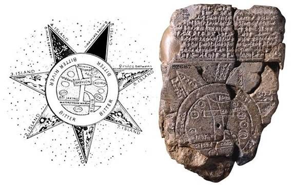 Древняя вавилонская карта земли с ее представлением пространства с семью сторонами света