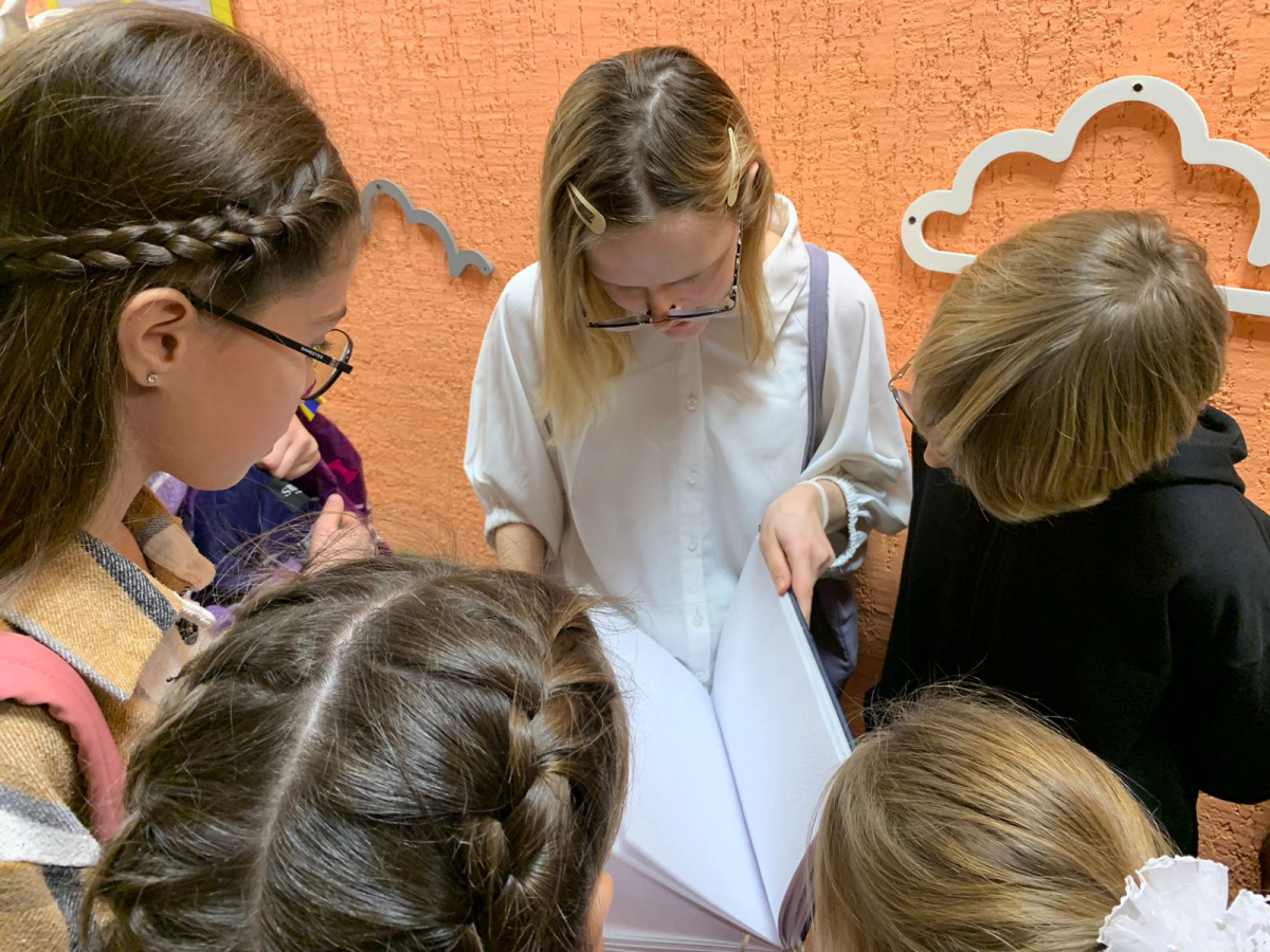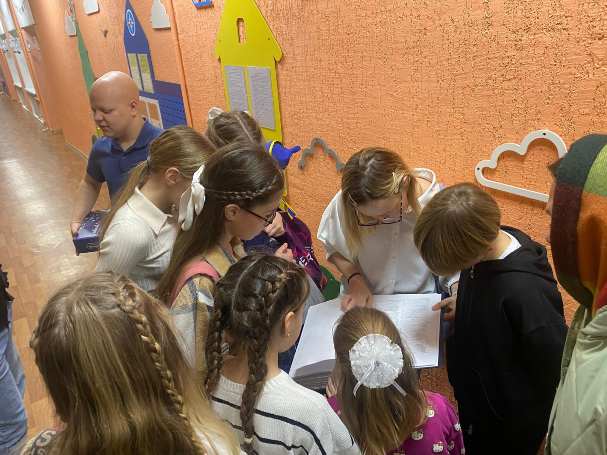 Мы благодарим Российское Библейское Общество за книги Библии, изданные шрифтом Брайля, которые ребята получили в подарок. Это Бытие, Исход, Притчи и Книга Иова. Также все воспитанники школы получили сладкие подарки от нашей команды.